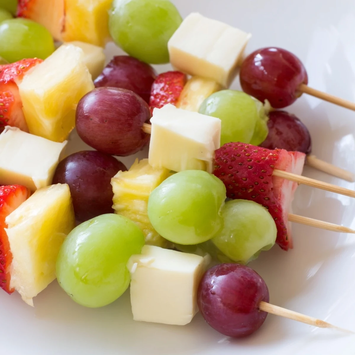 Firm fruits like grapes, strawberries, pineapple, melon, and kiwi hold up beautifully. Avoid soft fruits like bananas or peaches as they can become mushy. Apples work well too—just toss them in lemon juice first to prevent browning.
