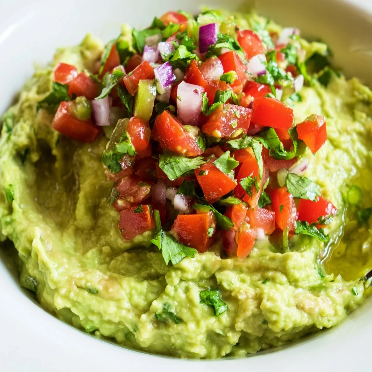 Last summer I brought this to a potluck and watched three different people ask for the recipe while simultaneously reaching for another chip. Theres something about seeing those colorful tomatoes piled on top of bright green guacamole that makes people gravitate toward it immediately. I started making double batches because one bowl disappears faster than you would believe possible at any gathering.