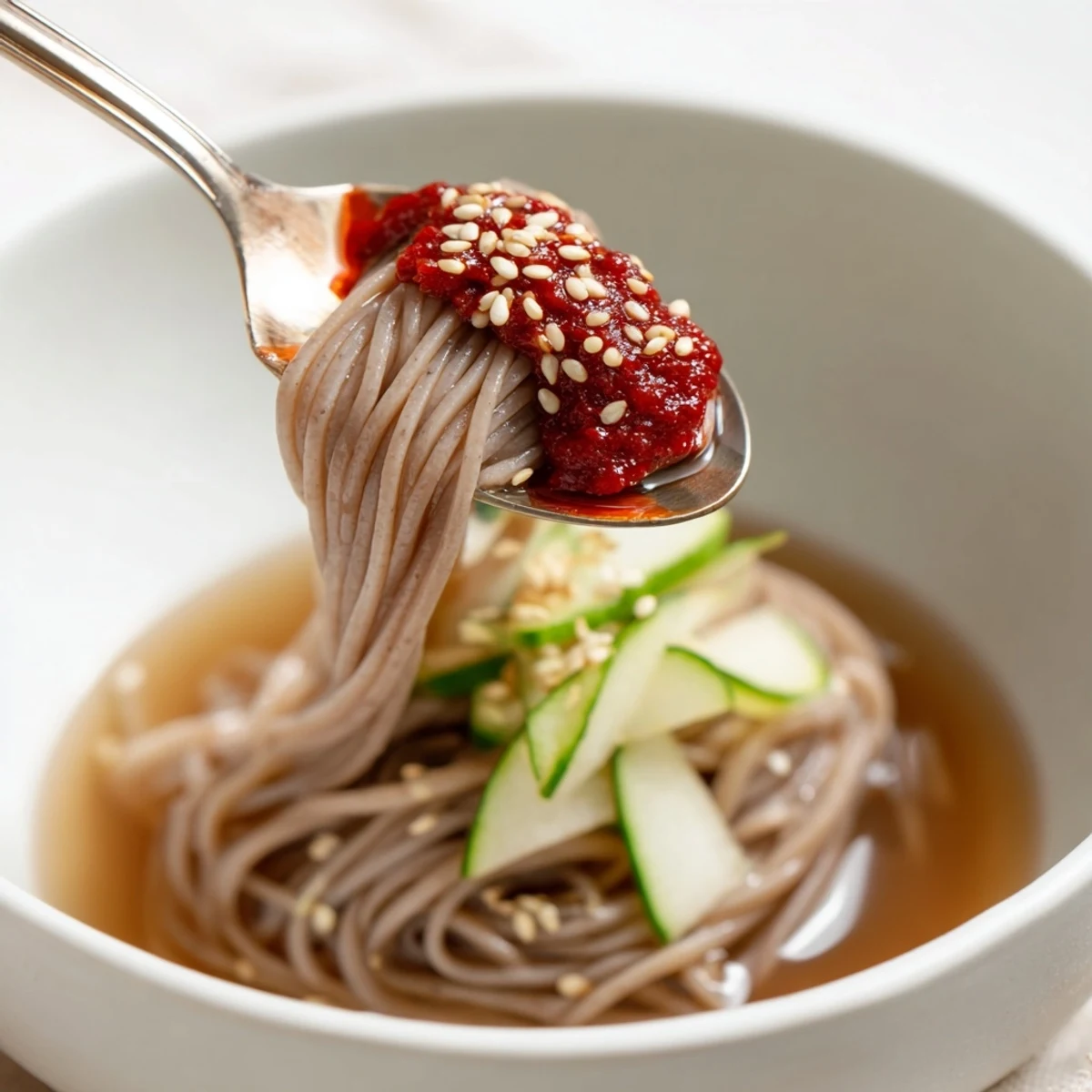 My aunt tried to substitute regular spaghetti once because she could not find naengmyeon, and while we all laughed about the texture disaster, she taught me that respecting authentic ingredients matters. Now I keep extra packages of buckwheat noodles in my pantry just in case naengmyeon cravings strike at midnight.