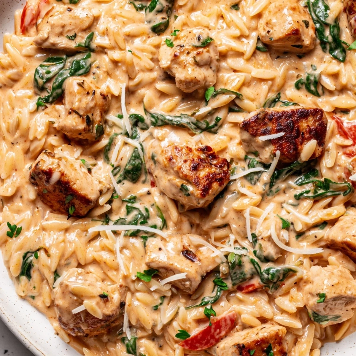 This hearty skillet brings together tender diced chicken, perfectly cooked orzo pasta, and vegetables in a luxuriously creamy Cajun-spiced sauce. The one-pot method means the orzo absorbs all those savory flavors while simmering in chicken broth and heavy cream, creating a thick, velvety texture. Each bite delivers the perfect balance of Cajun heat, rich dairy, and smoky paprika. Ready in under an hour with minimal cleanup, this is ideal for busy weeknights when you want something satisfying and full of bold Southern-inspired flavors.