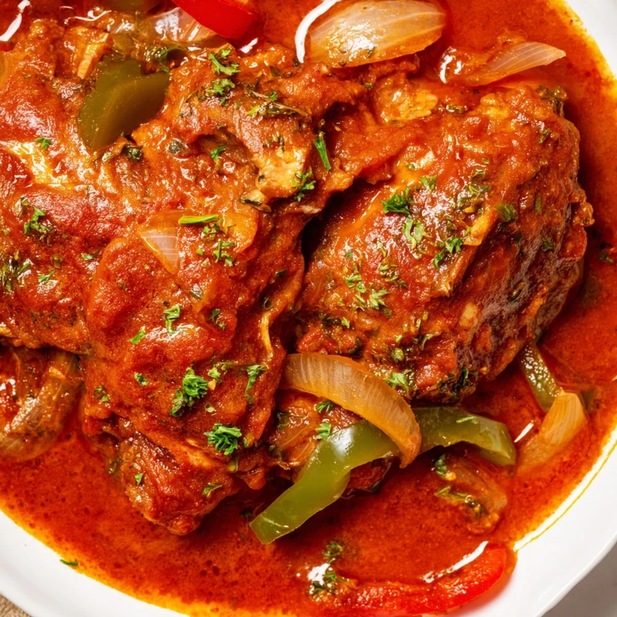 - Chicken thighs bone in and skinless: The bones keep the meat juicy during the long simmer and skinless means less grease in your final sauce.